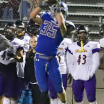 I used the same set-up I have been using this season with one change. I went from a 50mm prime lens on the 70D to a 18-135 zoom lens. This allowed me to do even better when there is a play that happens incredibly close to my location. Prior to the game I was doing some test shots of the team practicing. I found my back-up SD card I was using was not up to snuff. Although it is a higher end card it was slow when saving when I took a bunch of photos. So I changed it back to the primary SD card and from there forward there were no issues with just holding down my shutter button.
